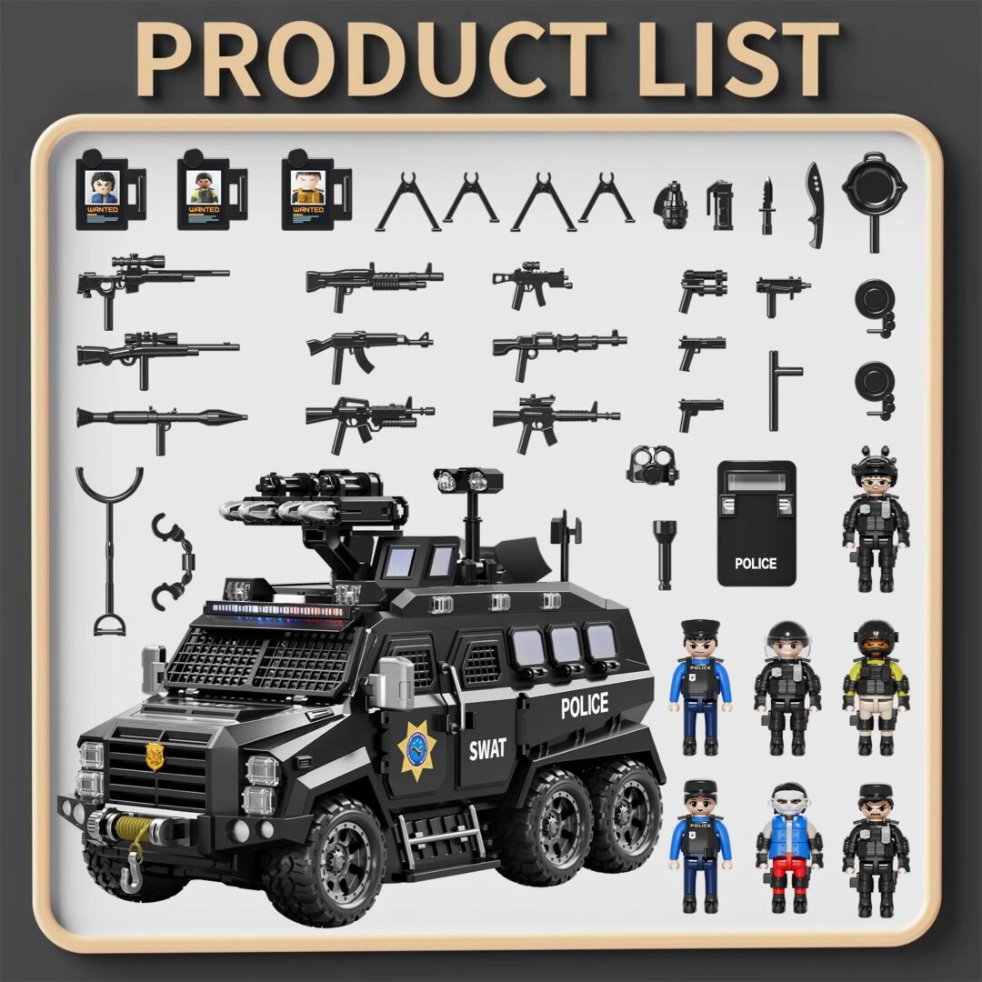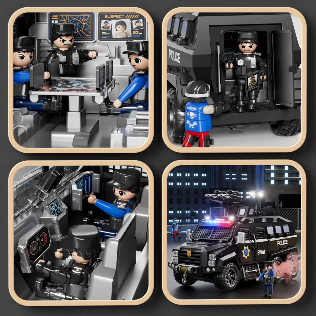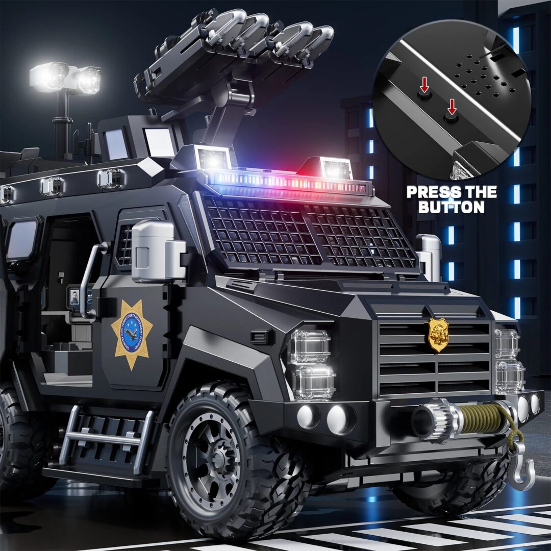 Police-Themed Armored Off-Road Vehicle Toy with Sound and Light Features for Children
