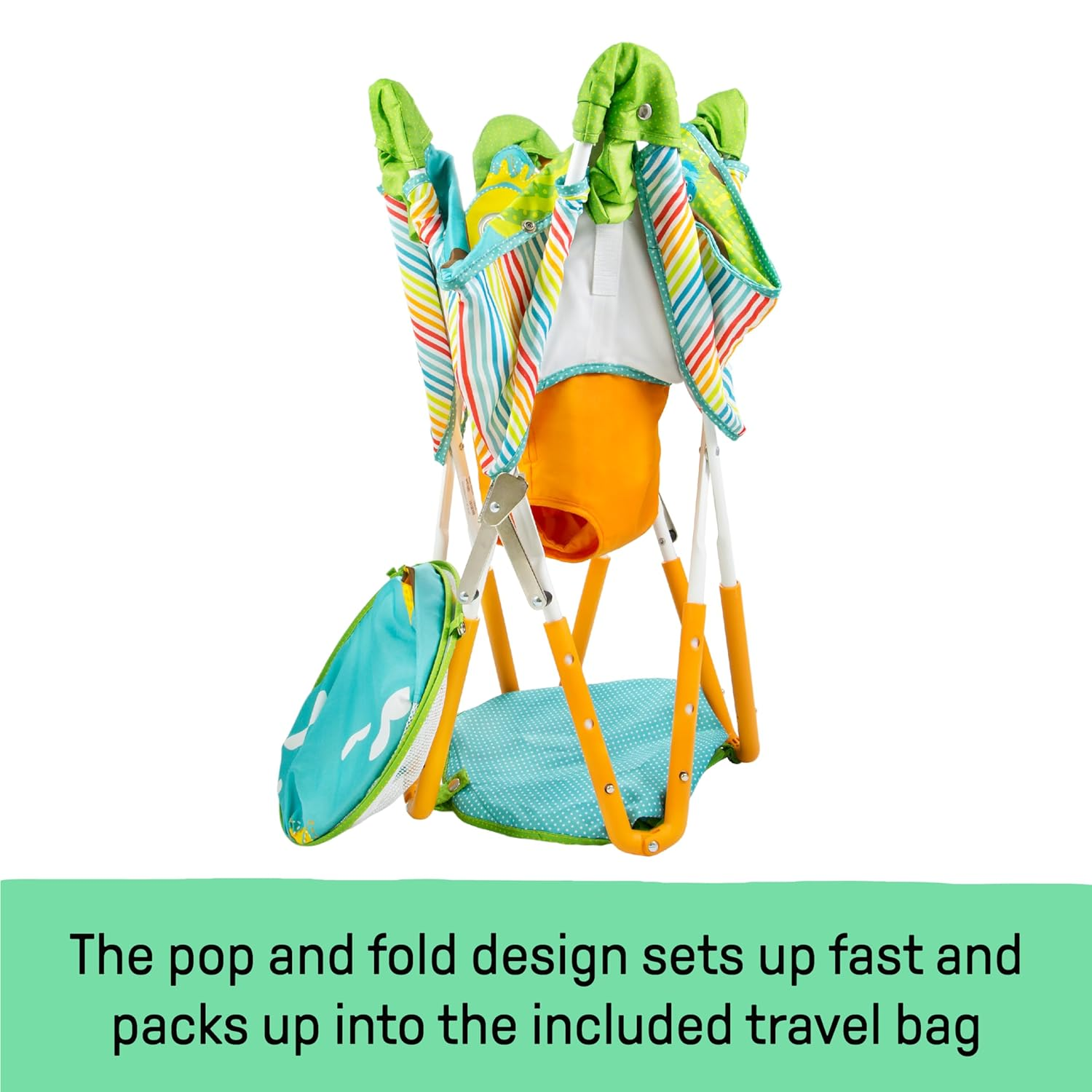 • The Summer by Ingenuity Pop N Jump with Canopy Activity Center is a compact portable jumper that sets up in seconds to give babies a fun, comfortable space to play