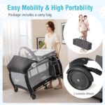 Safety and comfort are paramount, and this travel crib is certified by ASTM and CPSIA, featuring anti-collision round edges to protect your little one from unexpected injuries. The 7-point supporting structure enhances load-bearing capacity, accommodating children from 0 to 3 years old. The included baby bassinet comes with a soft, skin-friendly mattress and a detachable canopy with a net to provide a serene sleeping environment. Additionally, the 360° breathable mesh cloth allows parents to easily monitor their baby while ensuring proper airflow. With easy mobility, tool-free setup, and thoughtful accessories, this nursery center is the ultimate choice for modern parents.