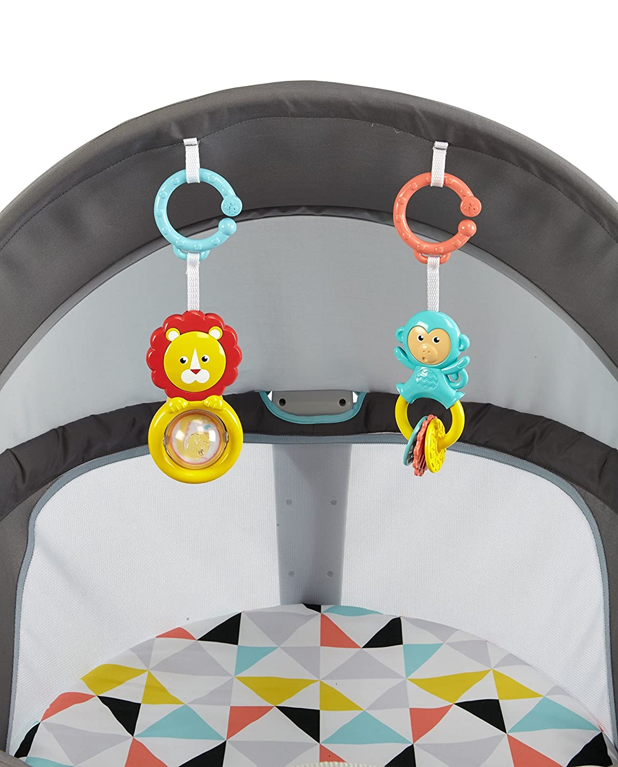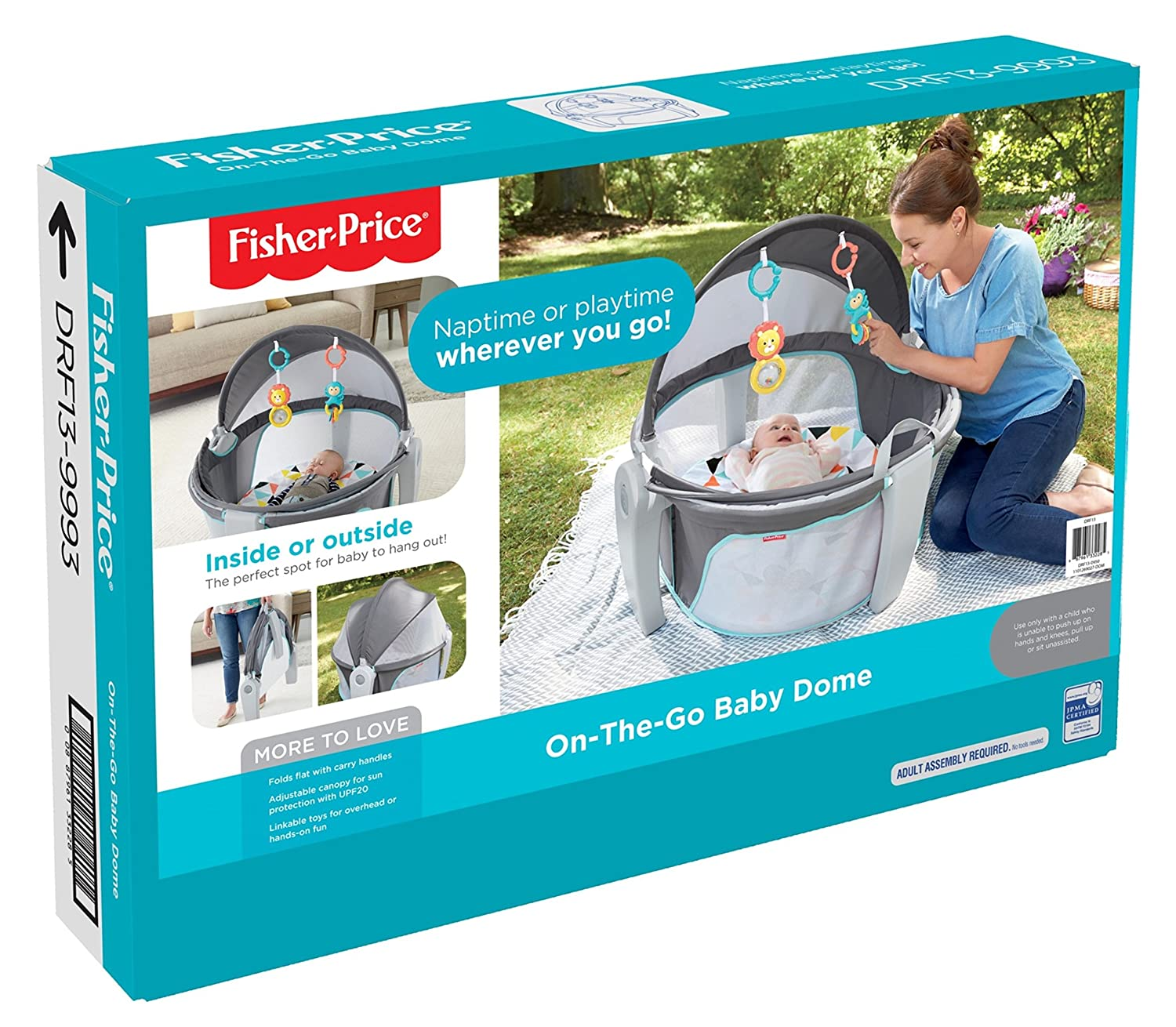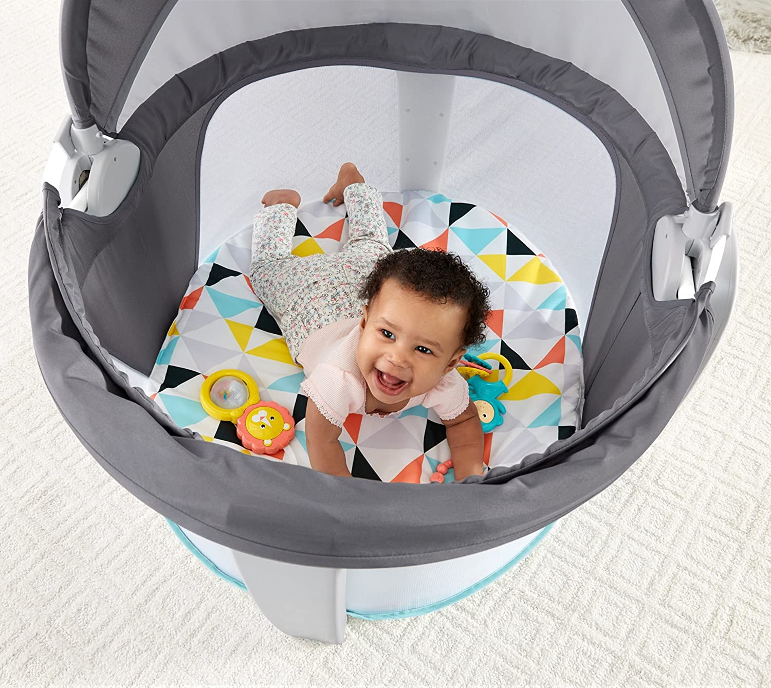 Baby feels right at home in the Fisher-Price Portable Baby Dome with Developmental Toys & Canopy. This 2-in-1 portable baby bassinet and play space is perfect for use at home, outside, or while traveling. It can be used indoors or out, and the adjustable canopy protects your baby from the sun’s rays (UPF 20) and bugs.