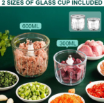 This mini food processor features a one-touch operation, allowing you to easily chop food without having to use your hands. Simply fill the glass container with your ingredients, lock the cover, press the power switch, and the chopper will evenly shred the food in 5-30 seconds. The transparent glass container allows you to see the situation of the food at any time and get the desired food size. The blades of the chopper are made of food-grade 304 stainless steel, which is more resistant to rust and corrosion. The glass containers are BPA-free, easy to clean, and safer compared to plastic bowls. This makes the NUNET baby food chopper ideal for making baby food.