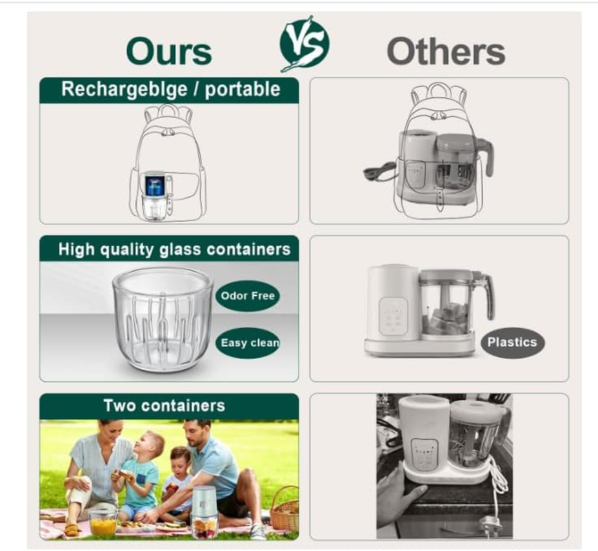 Home Food Processor “Portable Rechargeable Baby Food Processor with Glass Containers and Spoon”