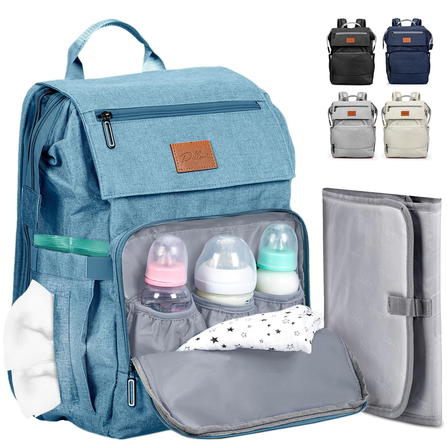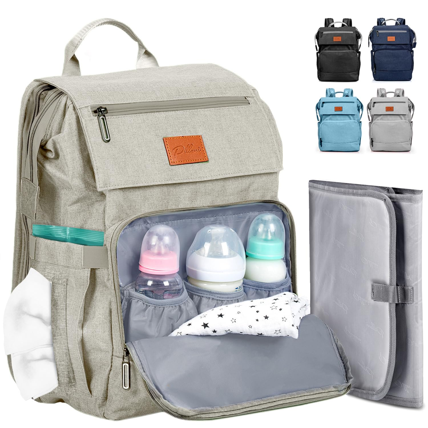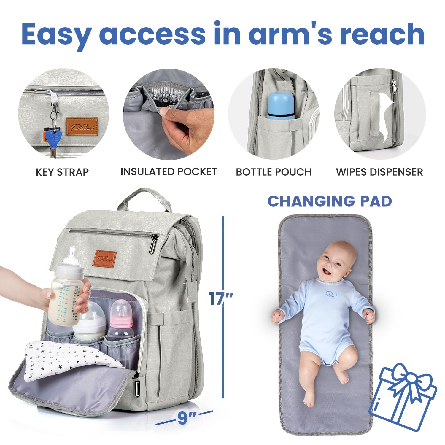With its exceptional design, the diaper bag offers excellent organization with 16 function pockets. It features a large flap zipper pocket on the front and a key loop for easy access to your essentials. The bag also has 3 insulated pockets for baby bottles and elastic side pockets for water bottles, wipes, tissues, and more.