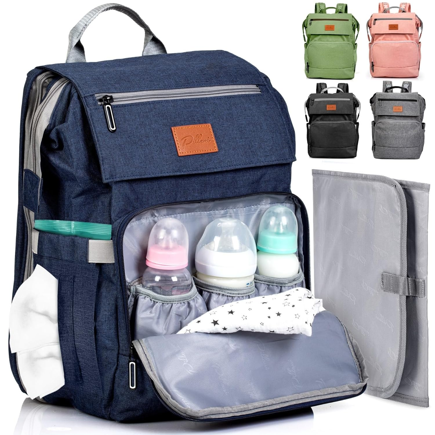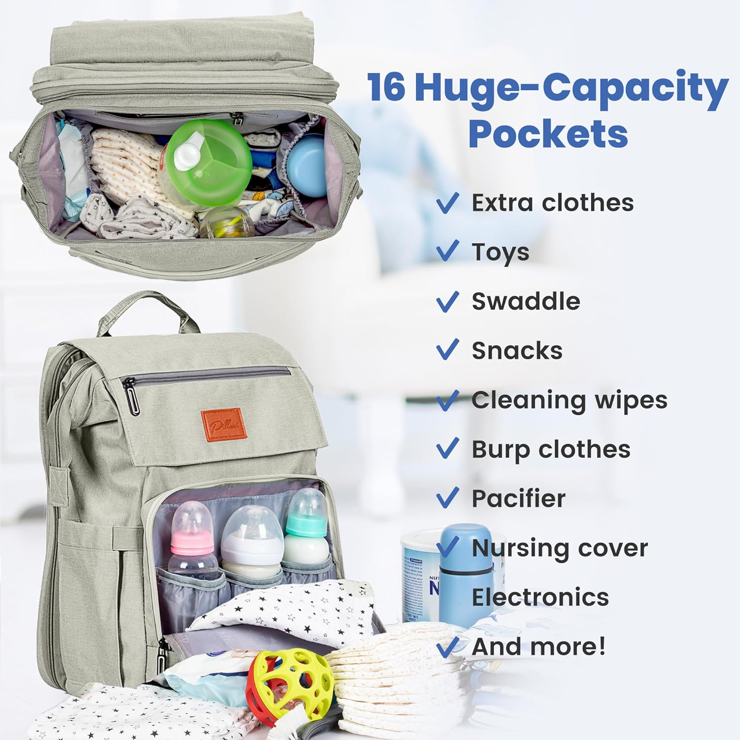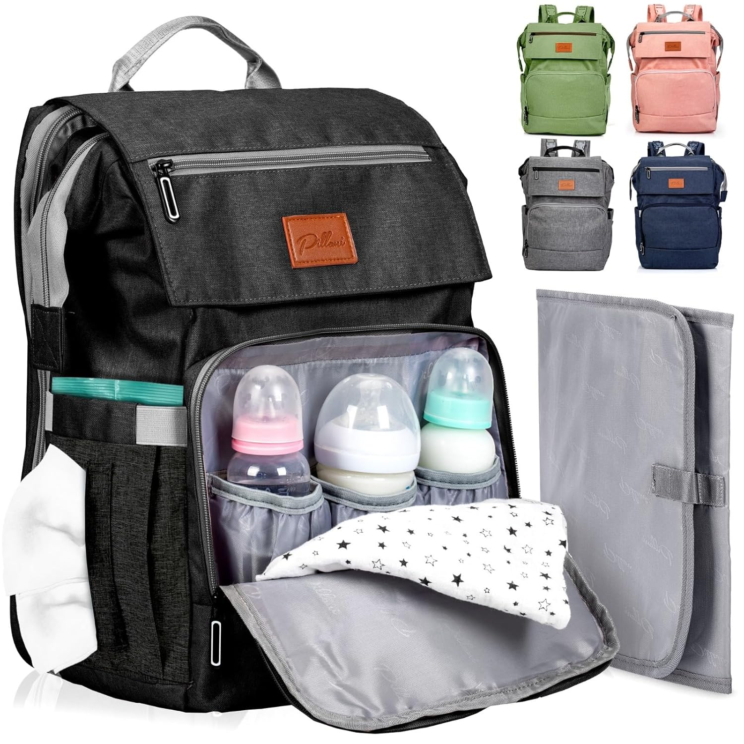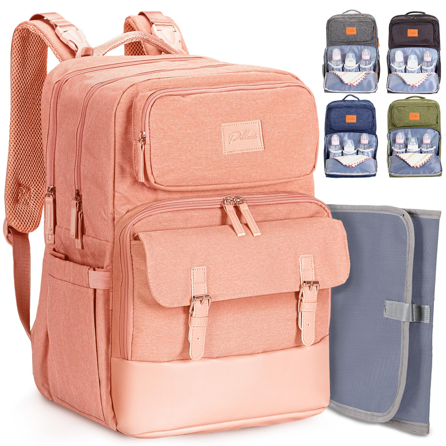 With its exceptional design, the diaper bag offers excellent organization with 16 function pockets. It features a large flap zipper pocket on the front and a key loop for easy access to your essentials. The bag also has 3 insulated pockets for baby bottles and elastic side pockets for water bottles, wipes, tissues, and more.