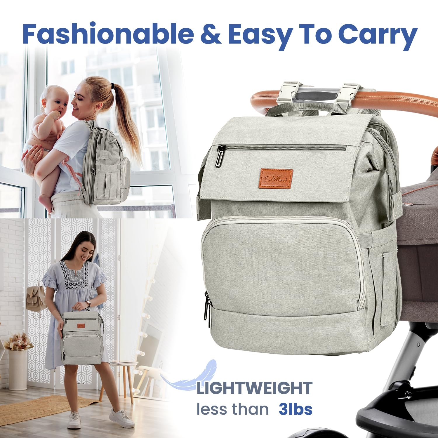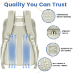 The diaper backpack is made of superior quality and durable 300D Oxford fabric, which is also waterproof, making it suitable for use even during the wet season. It is designed to be lightweight, weighing less than 3 lbs, and has extra reinforced seams for added durability. The deform and tear-resistant design ensures that this diaper bag will last for years of use.