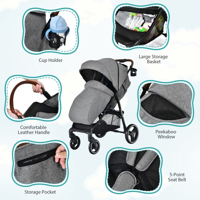 Premium High Landscape Baby Stroller: Crafted from high-quality steel and EVA materials, this premium baby stroller is designed for durability and longevity. The skin-friendly fabric ensures breathability and wear resistance, making it suitable for everyday use. Featuring a convenient cup holder and a soft leather handrail, this stroller provides both functionality and comfort for parents on the go. The high landscape design effectively elevates your baby above car exhaust levels, promoting better health and a broader view of the surroundings, which is beneficial for their physical and mental development.