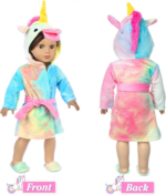 Girls will love dressing up their dolls in this adorable unicorn costume. The vibrant rainbow colors and cute design will bring joy and excitement to playtime. This set is perfect for pajama parties and will provide hours of imaginative play.