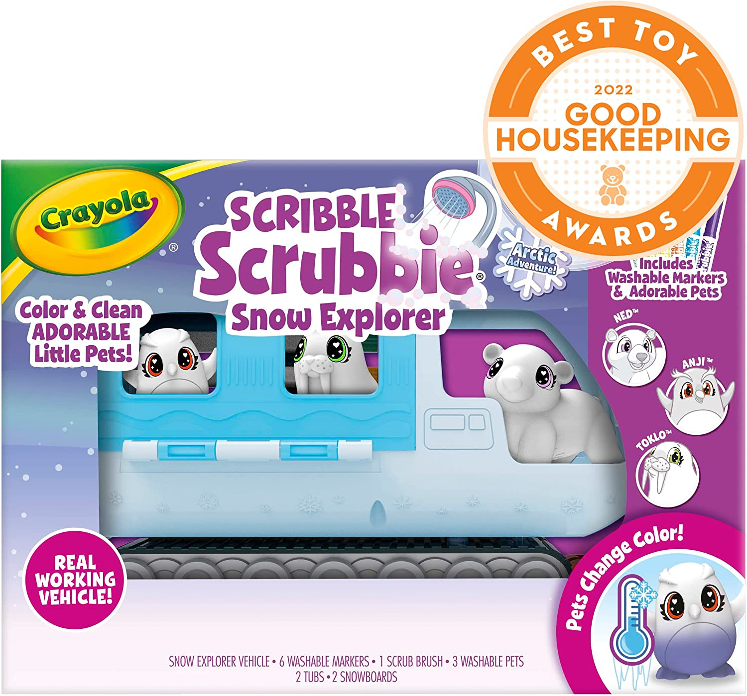 Embark on a colorful adventure with the Crayola Scribble Scrubbie Pets Arctic Snow Explorer set! Designed for children ages 3 to 6, this delightful playset includes everything needed for imaginative play. With 3 Color-Change Pets, 6 vibrant markers, and an explorer vehicle that doubles as a storage solution, kids can unleash their creativity as they customize their adorable toy pets. The unique color-changing feature adds an extra layer of excitement; simply place the pets in the freezer or expose them to sunlight to witness their transformation from white to blue.