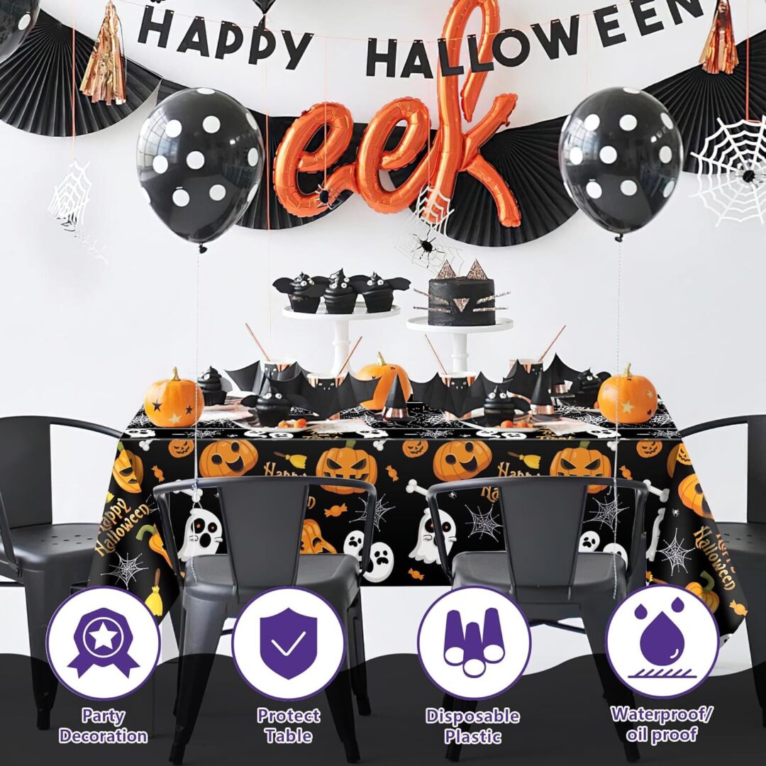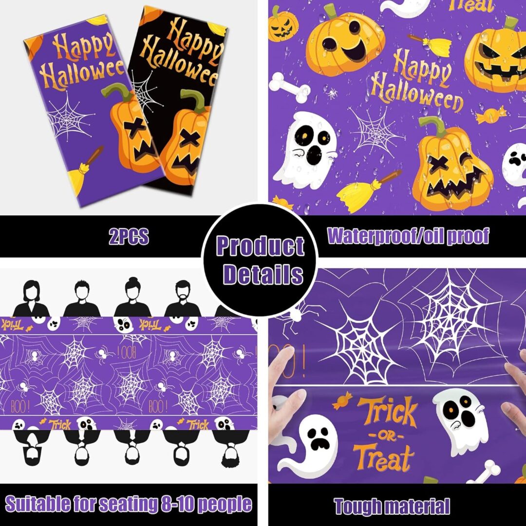 • [Spine-Chilling Memories]: Create unforgettable moments with our Halloween decor, which adds a spine-chilling touch to your celebrations. From costume parties to trick-or-treat nights, these tablecloths provide the perfect setting for capturing memories that will last a lifetime.