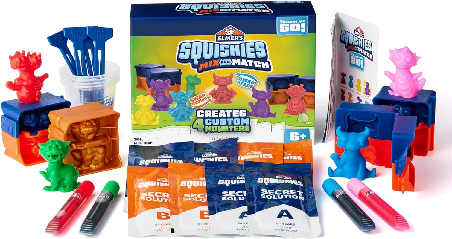 The Elmer’s Squishies Mix & Match Kit not only provides hours of entertainment but also fosters creativity and imaginative play. Children can experiment with different combinations, creating rare characters to add to their collection. Additionally, the kit includes essential tools such as mixing cups, stir sticks, and glue pens, ensuring a complete crafting experience. For those who wish to expand their creations, the Secret Solution refill pack is available separately, allowing for even more squishy fun!