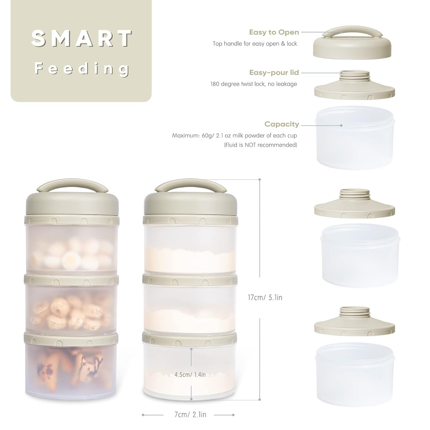 Termichy Stackable Portable Milk Powder Dispenser – 2 Pack in Warm Grey