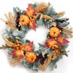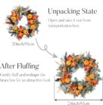• Elevate your autumn decor with the Stunning 24” Collapsible Fall Wreath by Valery Madelyn, a distinguished brand known for its original fall decorations. This exquisite wreath is adorned with a captivating blend of silk lambs ear, grain wheat, vibrant maple leaves, and corn leaves, encapsulating the essence of the fall season. The addition of vivid orange berries and pumpkins enhances its rich color palette, making it an ideal choice for both indoor and outdoor settings. Whether you place it on your front door or use it as a centerpiece, this wreath will infuse your space with warm, seasonal charm, perfect for Halloween and Thanksgiving celebrations.