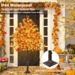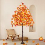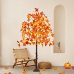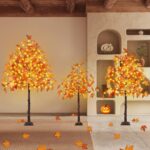 Home Holiday & Seasonal Decor Halloween Stunning Set of 3 Pre-Lit Artificial Maple Trees – 4FT, 5FT, and 6FT with 300 LED Warm White Lights for Captivating Fall Decor – Perfect for Thanksgiving, Halloween, and Outdoor Gatherings!