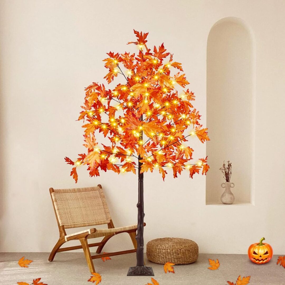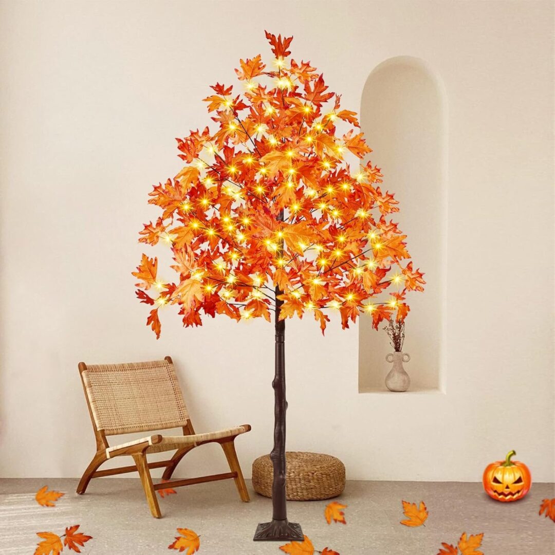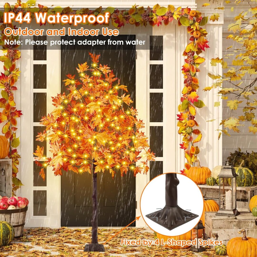 • The versatility of these trees is further enhanced by their built-in timer function, which allows for effortless operation. Simply plug the tree into an outlet, and with a long press of the adapter button, activate the timer to keep the lights on for 6 hours and off for 18 hours each day. Additionally, the adjustable branches enable you to customize the look of your trees, allowing for the addition of lightweight ornaments or extra maple leaves included in the package for a more natural appearance.