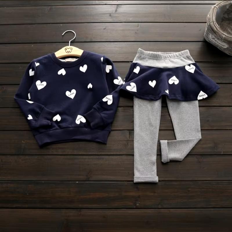 Toddler Girls’ Clothing Sets for Autumn and Spring – T-Shirt, Skirt, and Legging Outfits for Active Kids