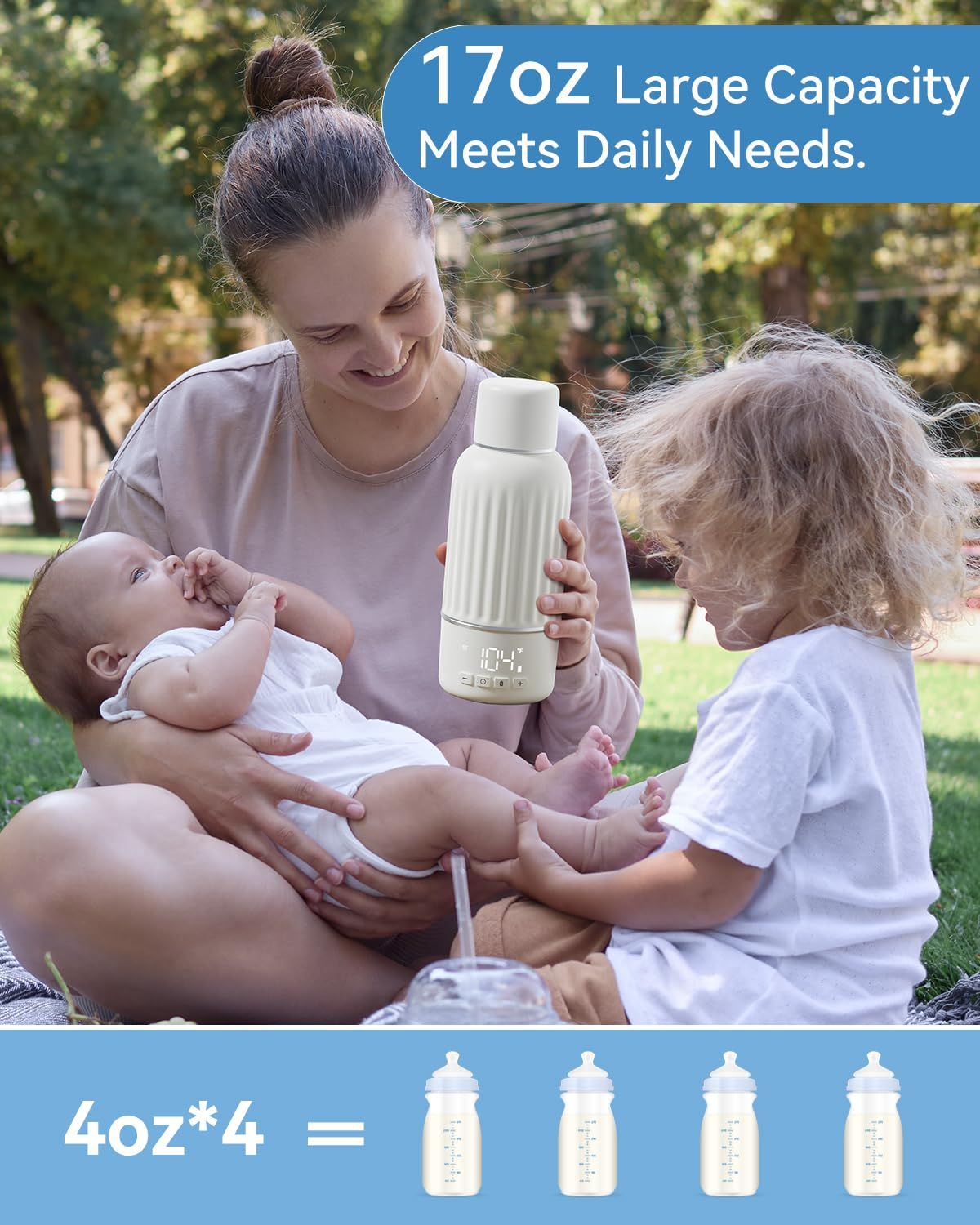 Travel-Friendly Portable Bottle Warmer – Fast 2.5 Min Heating for Breast Milk & Formula, 10400mAh Battery, 17oz Capacity, Quick Charging