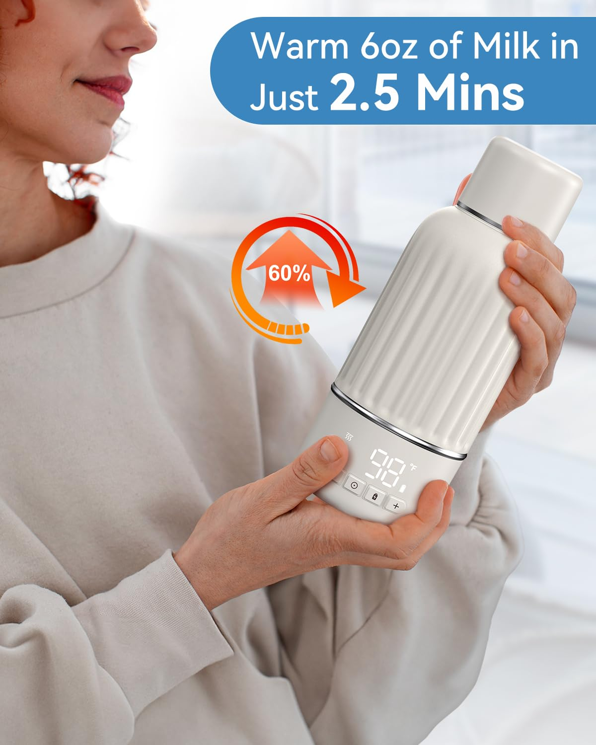 • 2.5-Minute Fast Heating: The Juissiart portable bottle warmer for travel heats 6oz of water or breast milk from room temperature to 98°F in just 2.5 minutes, quickly meeting your baby’s feeding needs with this efficient baby bottle warmer.