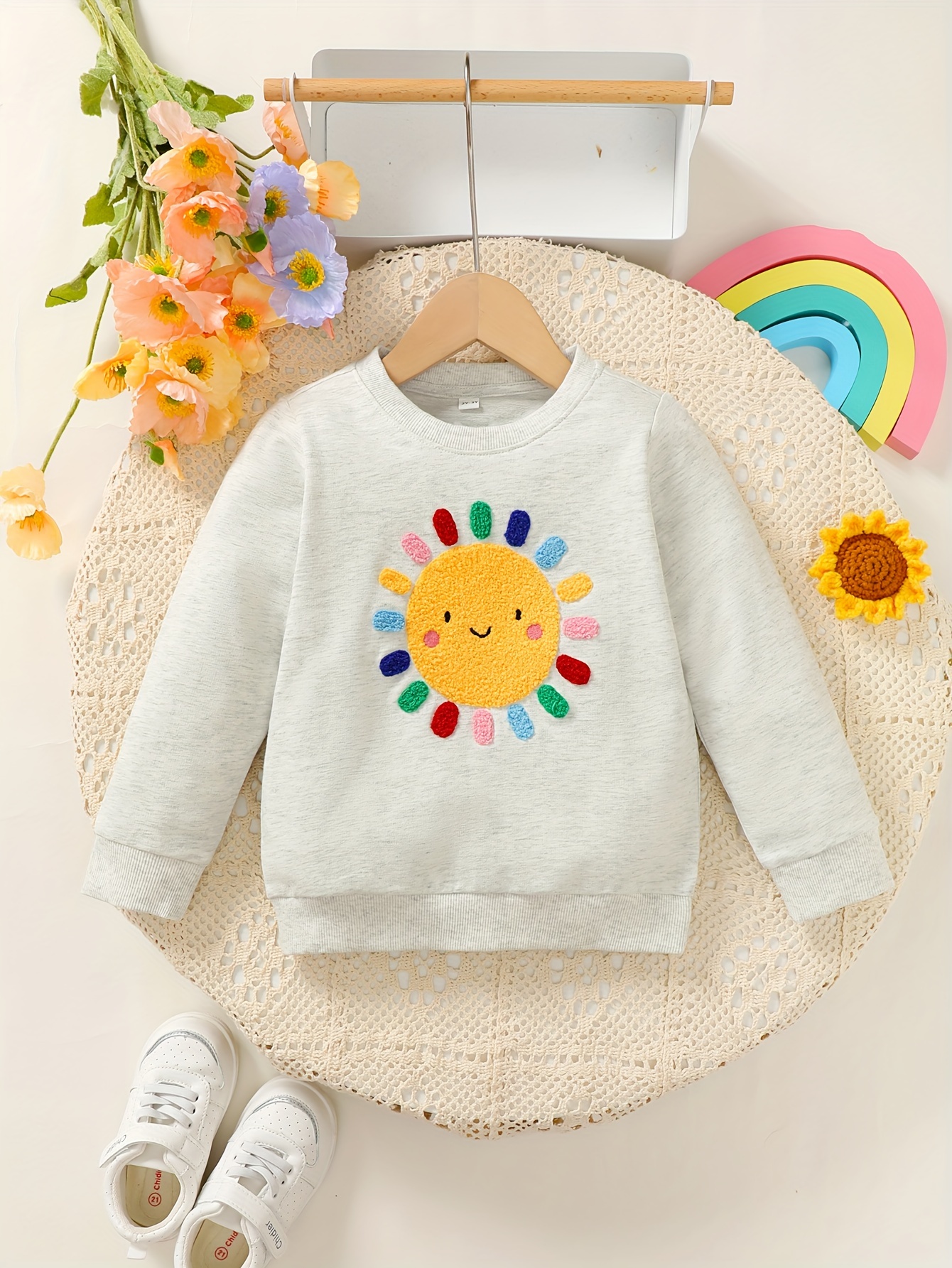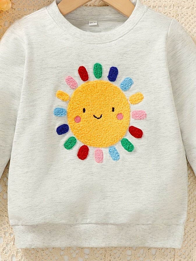 Made from soft, breathable cotton, this sweatshirt is designed to keep your little one cozy while allowing for ease of movement. The fun cartoon embroidery adds a playful touch, making it a delightful addition to any outfit. Pair it with jeans, leggings, or a skirt for a cute and casual look that’s ideal for school, playdates, or family outings.