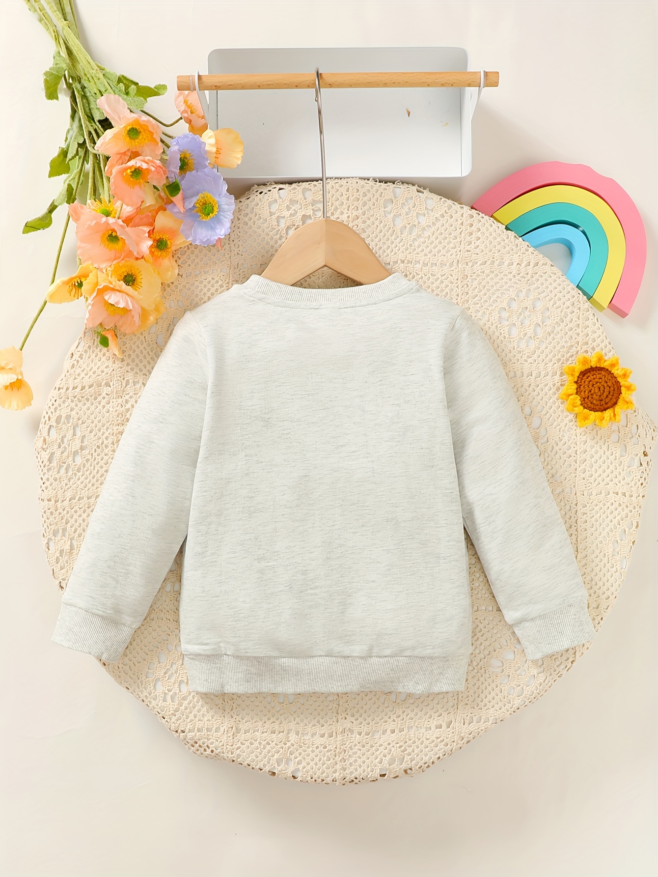 Trendy Girls’ Cotton Knit Sweatshirt with Embroidered Cartoon Design – Casual Long Sleeve Pullover for Spring and Fall
