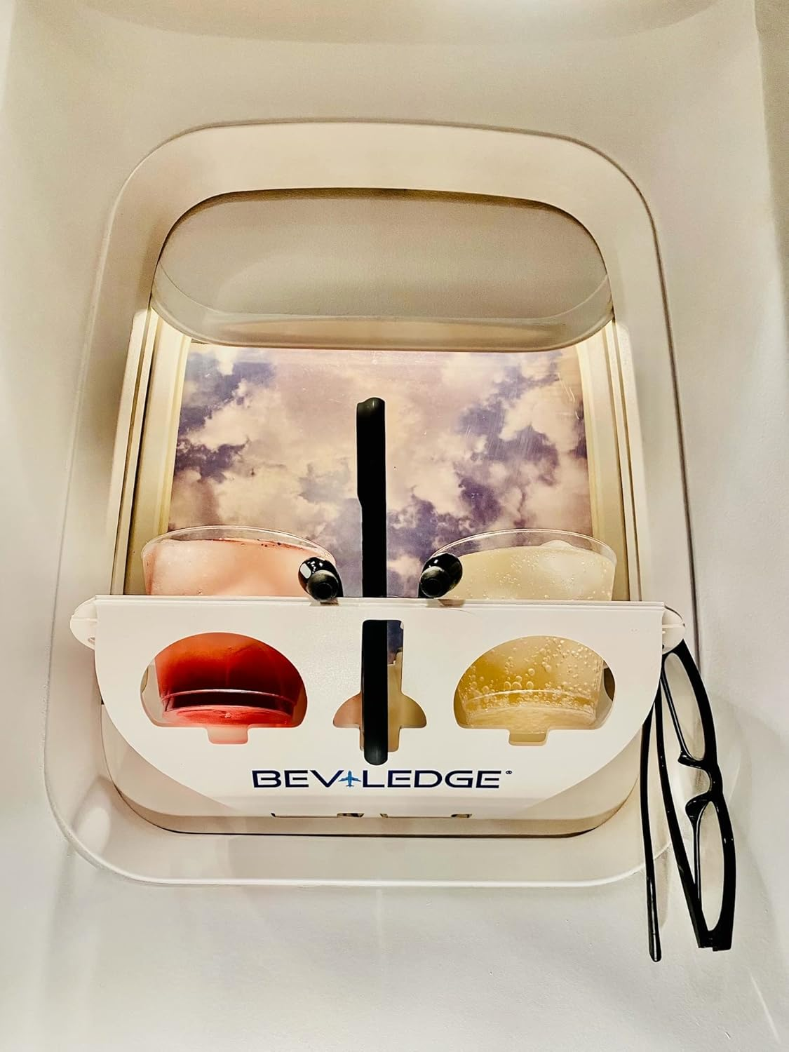 • Are you tired of limited space during your flights? The Ultimate Airplane Window Organizer is the essential travel accessory that transforms your in-flight experience. The BevLedge provides innovative storage solutions, allowing you to securely hold multiple items such as two beverages, a cell phone, eyewear, ear pods, and more. Designed to fit seamlessly into the window shade slots of most major commercial aircraft, this organizer ensures that your essentials are always within reach and off the tray table, creating a more enjoyable travel experience.