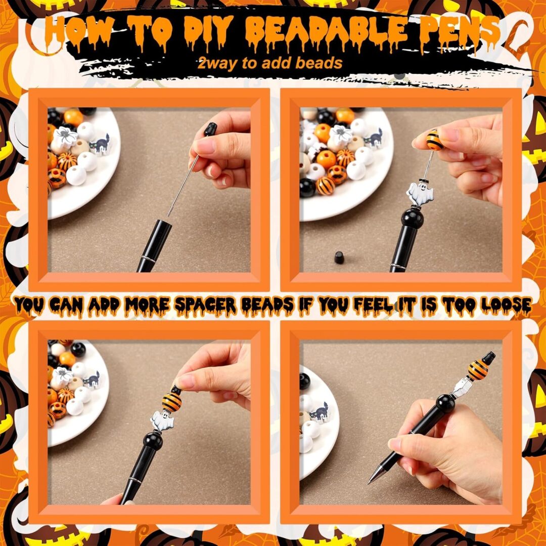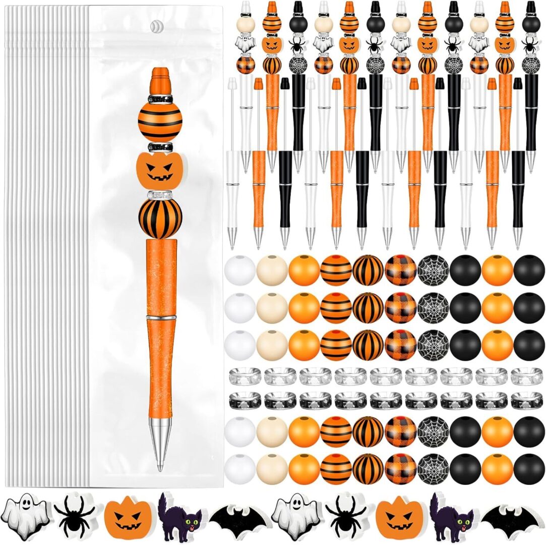 Ultimate Halloween DIY Bead Pen Kit – 197 Pcs with 24 Assorted Bead Pens, 101 Festive Beads, and 48 Spacer Beads for Creative Fun!