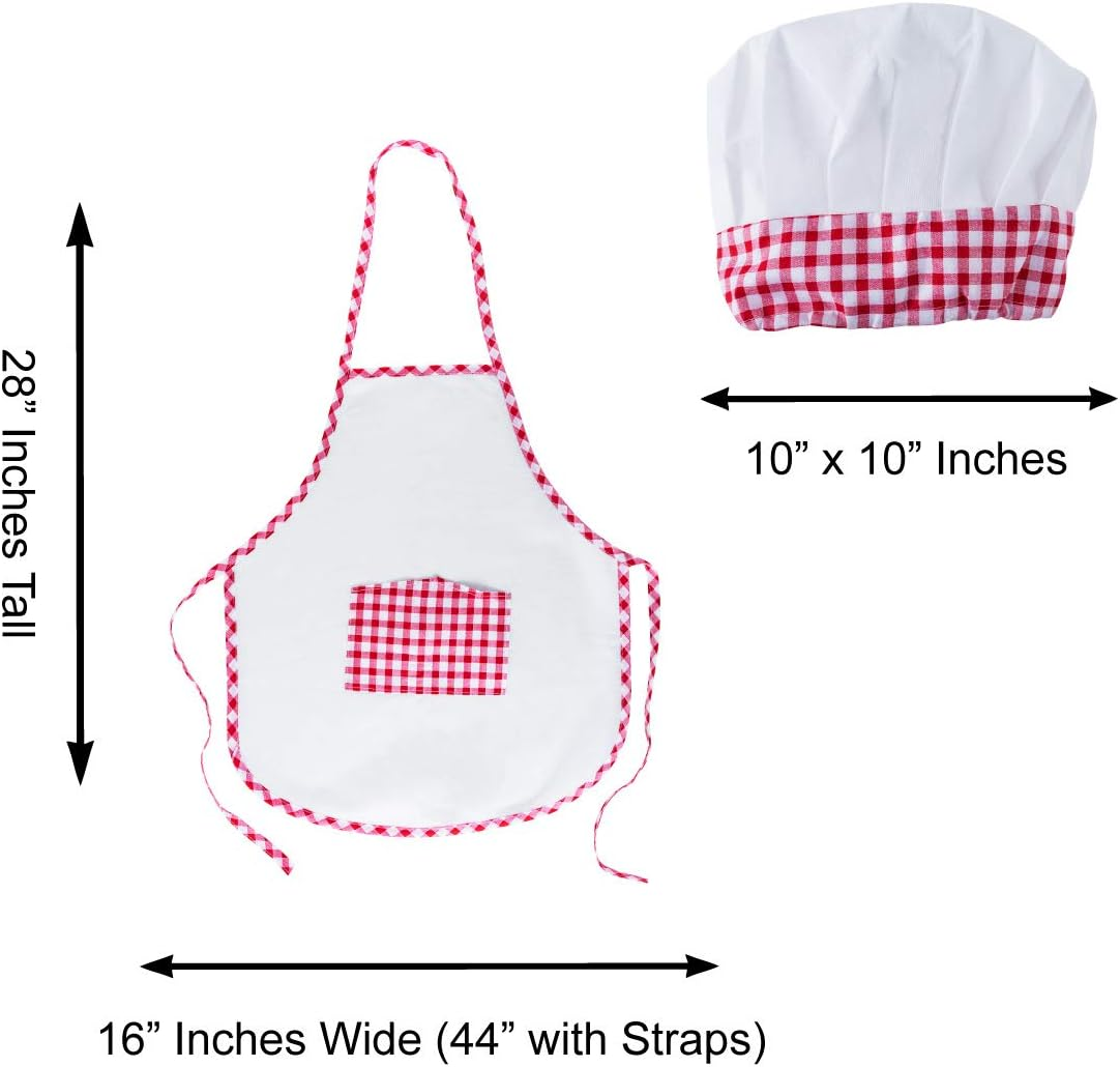 “Ultimate Kids Cooking and Baking Apron Set – 12 Piece with Chef Hat, Pocket, and Red Chef Costume for Career Role Play”