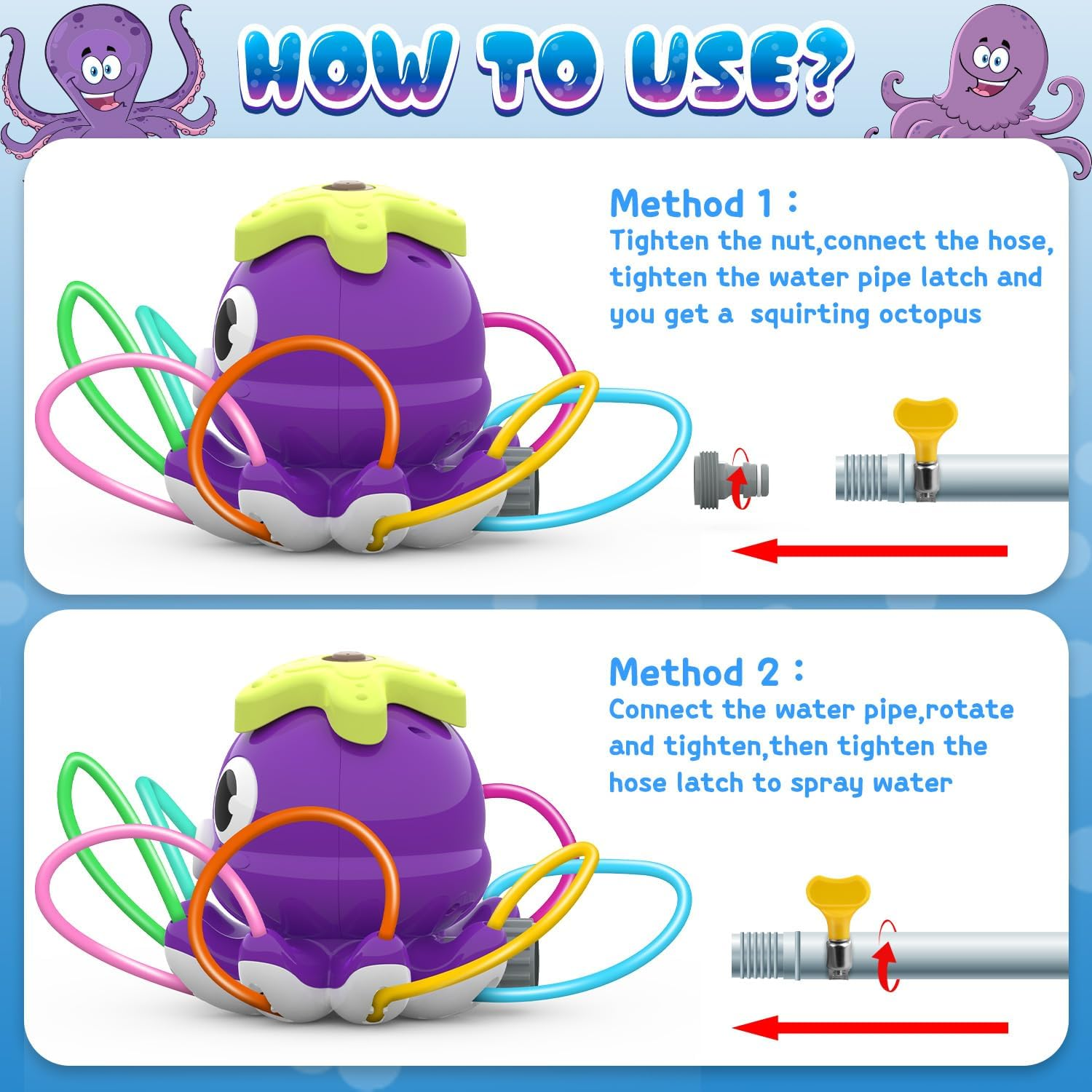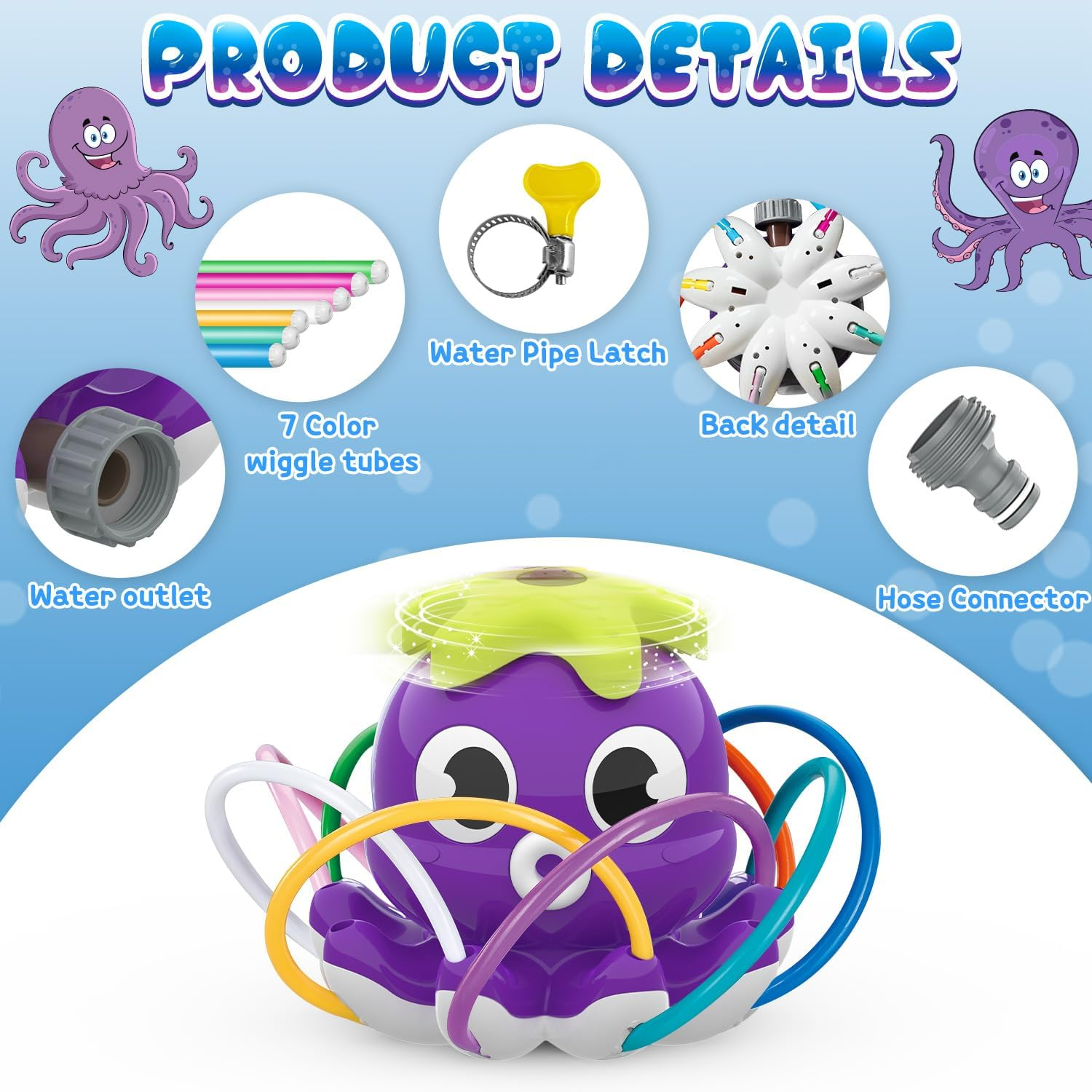 • 【Ultimate Outdoor Water Spray Fun】: Beat the summer heat with the Ultimate Outdoor Water Spray Sprinkler, designed for children ages 3 to 8. This delightful octopus-themed sprinkler features a waterproof rubber ring and 8 vibrant wiggle tubes, making it the perfect addition to any backyard. Your family can enjoy hours of refreshing fun as the octopus sprays water in all directions, transforming your yard into a lively aquatic playground.