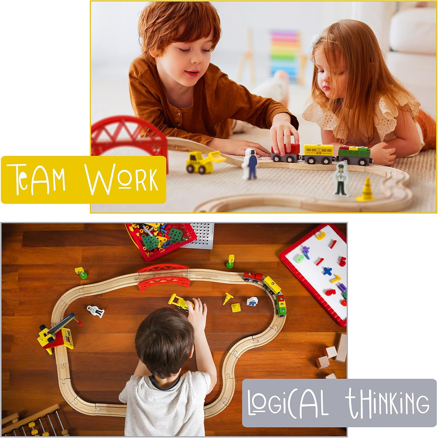 This wooden train set encourages teamwork and creativity, allowing families to come together to build an exciting railway adventure.