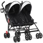 Safety and comfort are prioritized with this stroller, featuring a 5-point safety harness to keep your babies securely seated. The adjustable canopy provides protection from harmful UV rays and unexpected rain showers, while the peek-a-boo windows allow for easy monitoring of your children. With lockable swivel wheels and a foot-activated rear brake, you can maneuver smoothly over various terrains. Additionally, the stroller includes a convenient storage bag and cup holder for easy access to essentials, ensuring that you have everything you need at your fingertips.