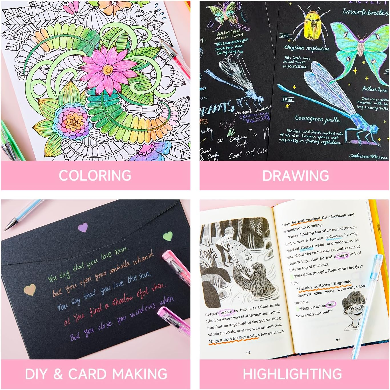 - VARIETY OF USES: This versatile gel pen set is non-toxic and acid-free, conforming to ASTM-D4236 standards. Ideal for bullet journaling, sketching, drawing, writing, and coloring books, these pens are perfect for enhancing scrapbooks, school projects, party invitations, greeting cards, DIY decorations, and letters to friends and family.