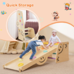 – Combines multiple play functions: seesaw, climbing ramp, sliding ramp, and more for versatile playtime