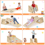 Safety and Educational Benefits: Crafted from high-quality pine wood and plywood, this climbing set features a stable triangular structure that ensures exceptional strength and stability, supporting up to 135 lbs. It is ASTM and CPSIA certified, guaranteeing that it is odorless and free from harmful BPA, making it a safe choice for your little ones. With adjustable height options for both the ramp and seat, this climber not only accommodates your child’s growth but also fosters motor skills, balance, coordination, and spatial awareness through physical play. Easy to assemble and store, the detachable design allows for convenient storage, making it suitable for both indoor and outdoor use.